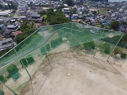 天井ネットを付けることで、隣接する住宅など施設外への飛球防止となります