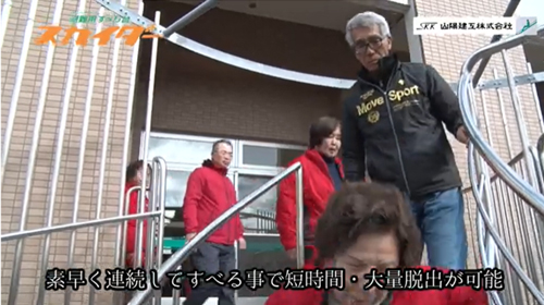 山陽建工株式会社の避難用すべり台「スカイダー」は、幼稚園や保育園、高齢者施設、公共施設などさまざまな場所で導入されています。