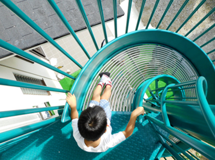 避難用滑り台は大きく分けて、直線式・らせん式・カーブ式の3種類です。