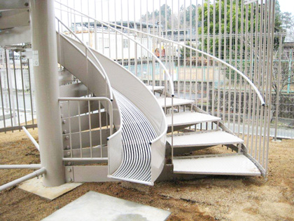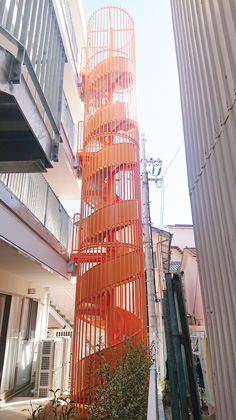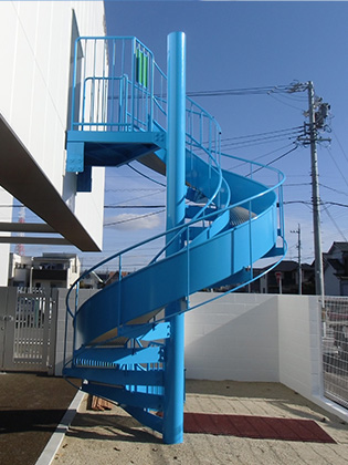 建築物に固定ており構造上の安全性が高く、らせん型は多くの場合2階から10階までに対応した製品となっており、各階からの利用が可能です。