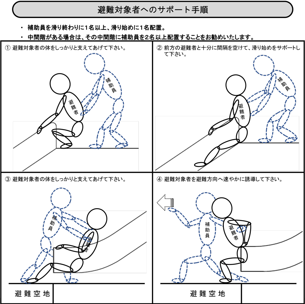- 実際に滑る前には降下方法・避難対象者へのサポート手順をお一読ください。