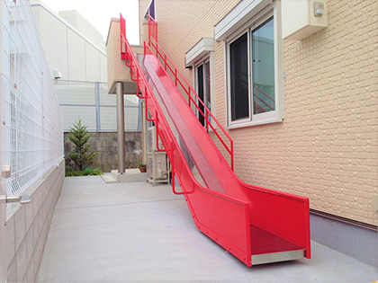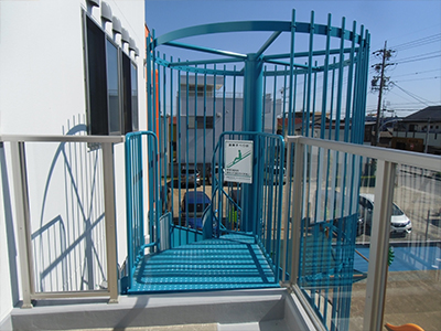 避難用滑り台は、火災や地震その他の緊急事態において階段やエレベーターが使用できない場合や素早い避難が必要となる場合の安全な避難手段として設置されています。