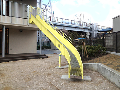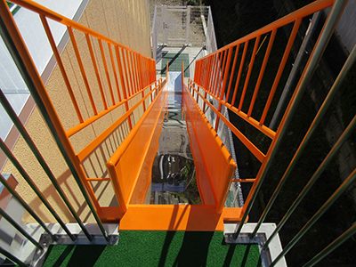 鋼製の部材にて構成されており、高強度かつ高い耐候性を有していますので永い期間において省メンテナンスで安定した避難が可能な製品となっているのが特徴です。