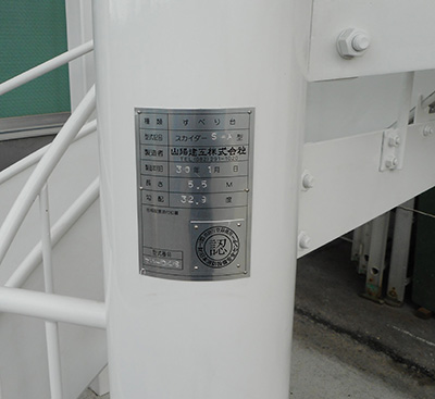 直線式すべり台- 一般財団法人日本消防設備安全センター認定品 消防法施行令第25条に基づく避難用すべり台です